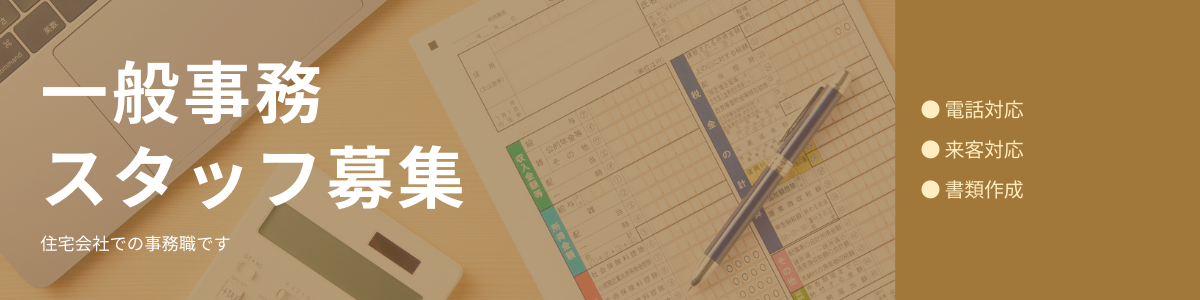 住宅会社の事務スタッフとして、電話対応・来客対応・書類作成などの一般事務を中心に担当していただきます。